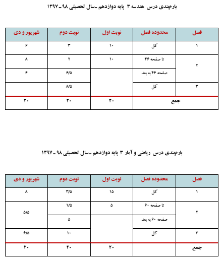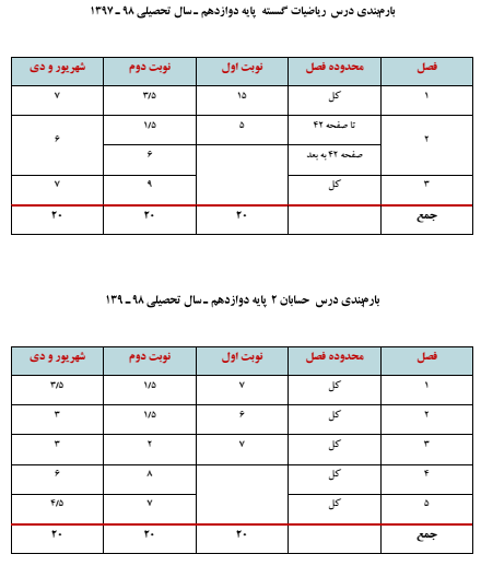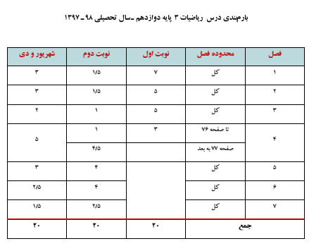 بارم بندی دروس ریاضی دوازدهم